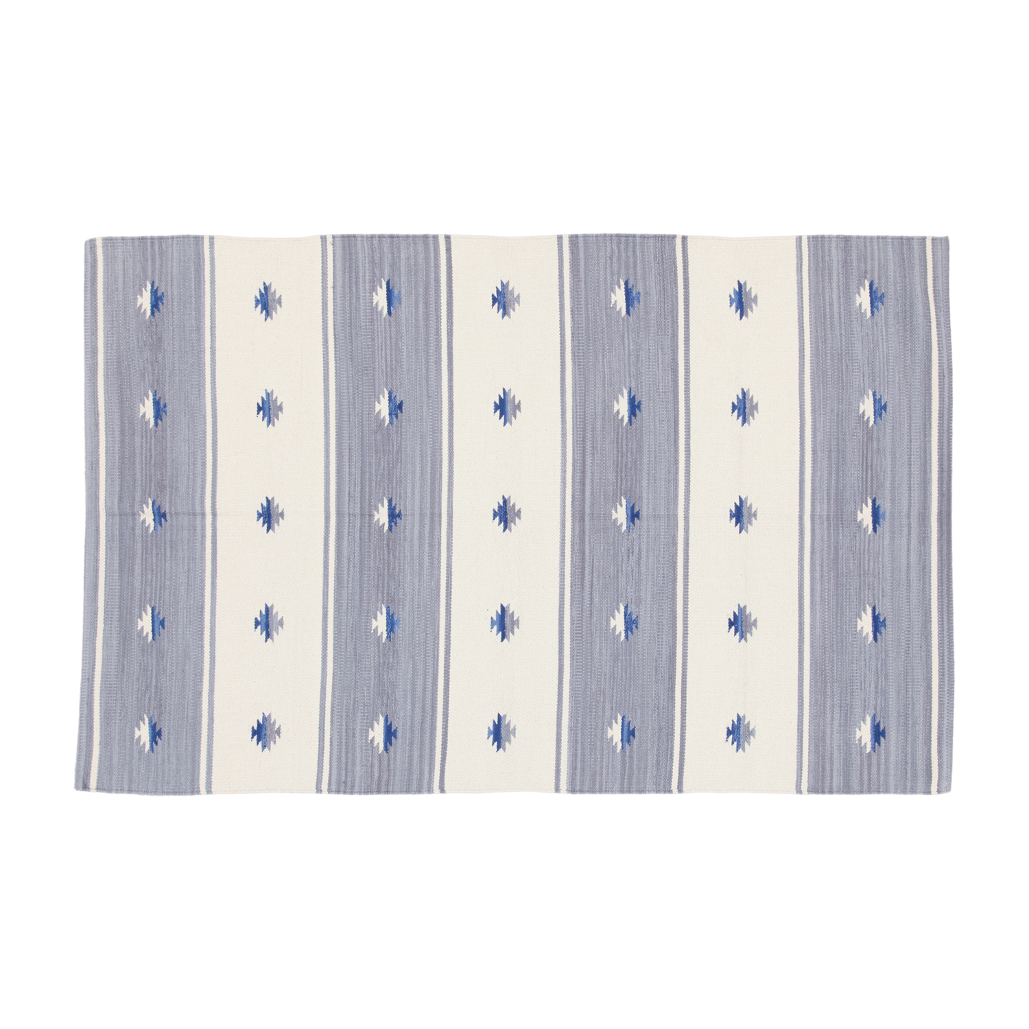 Patio è la nuova linea di tappeti in cotone tessuti con telaio manuale utilizzando solo filati di alta qualità. Le colorazioni avvengono con metodologie naturali donando al manufatto un gusto etnico modernizzato dall'uso di tinte di tendenza e dal decoro rigato. Tappeto double face. Misure: 200x140 cm.