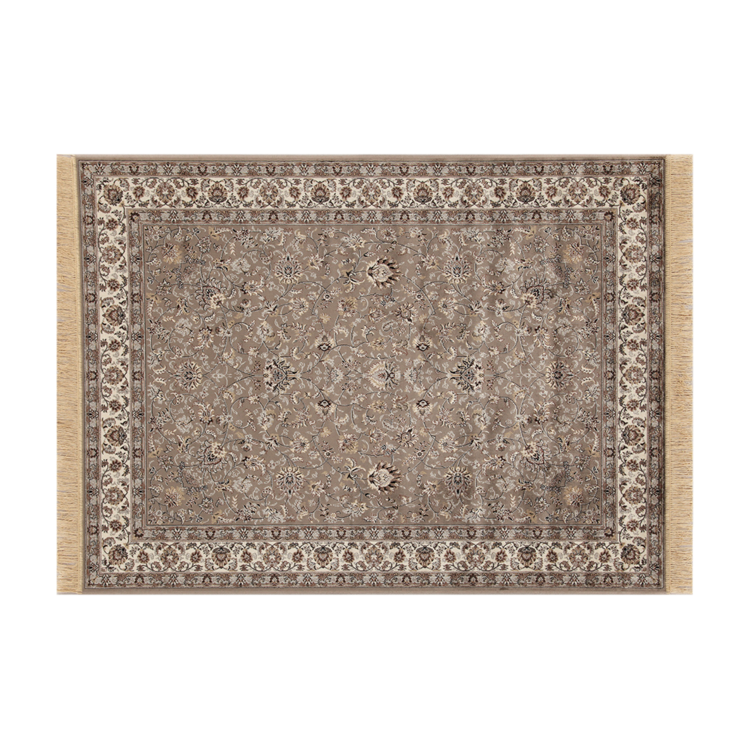 Bellissimo tappeto tessuto a macchina, dall'estetica ispirata ai tappeti orientali: la suddivisione tra cornice e campo prevede la prima luminosa e riccamente decorata, mentre il campo è di un colore più profondo che riempie lo sguardo e si arricchisce con un effetto vissuto. Le estremità sono completate da eleganti frange. Raffinato e delicato, questo complemento d'arredo ricco di charme completa il suo fascino con la lucentezza e il tocco setoso conferito dalla viscosa di cui è interamente realizzato. Prodotto da trattare con un po' di delicatezza, soprattutto per il lavaggio e la pulizia ordinaria, ma dall'effetto scenico assicurato e dalla praticità data dallo spessore minimo che ben si addice a pavimenti con riscaldamento a pavimento e zone di scorrimento per le porte. Misure: 230x160 cm.