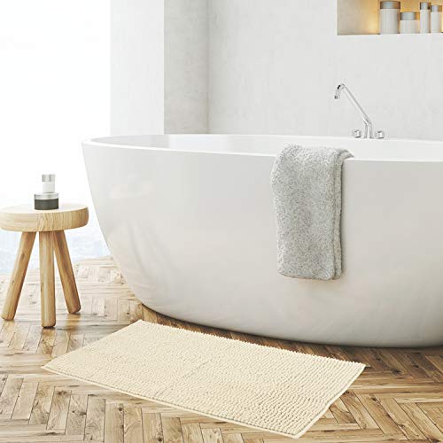 Tappeto per Bagno Antiscivolo MAXI cm 60 x 90 con fondo gommato, Tappeto Moderno Spesso Ultra Assorbente in morbida microfibra 900gsm. Tappeto Scendi Doccia e Asciuga Passi e sanitari (Panna)