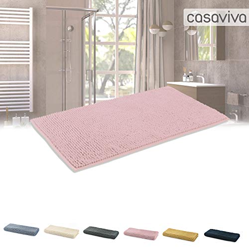Tappeto per Bagno Antiscivolo MAXI cm 60 x 90 con fondo gommato, Tappeto Moderno Spesso Ultra Assorbente in morbida microfibra 900gsm. Tappeto Scendi Doccia e Asciuga Passi e sanitari (Rosa antico)