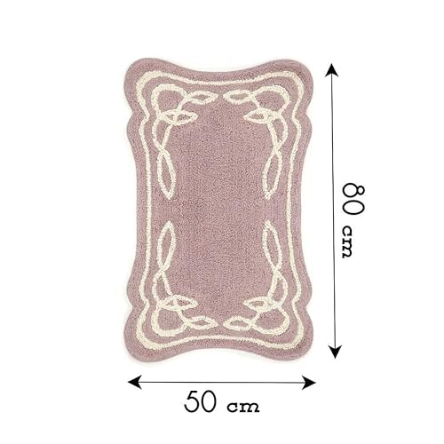 Tappeto Bagno Sagomato Shabby Chic 100% Cotone Colore Malva Chiaro 50x80