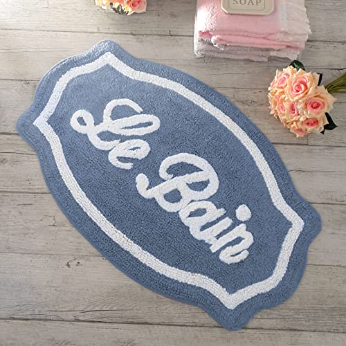 Tappeto bagno Sagomato Stile Shabby chic, Le Bain Collection, Tappetino per il Bagno, 100% Cotone (Blu / Bianco, 50x80)