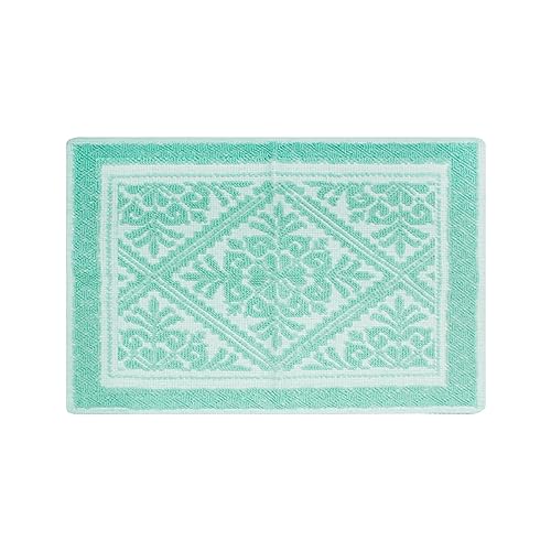 Tappeto da Bagno Sardo Cotone Tinta Unita Fantasia in Rilievo Bordo Ricciolini (40x60 cm, Verde Acqua)