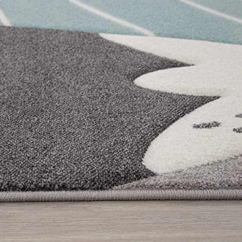 Tappeto Bambini Cameretta Pastello 3D Motivo di Montagne Moderno, Dimensione:140x200 cm, Colore:Grigio-Blu