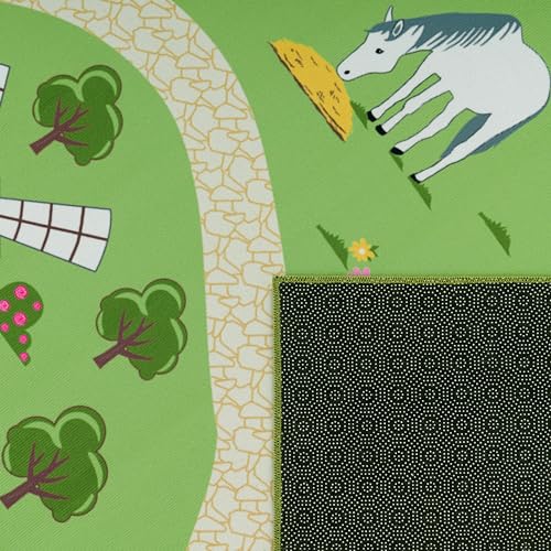 Tappeto per bambini, Tappeto da gioco per camere dei bambini, Paesaggio e cavalli, In verde, Dimensione:120x160 cm