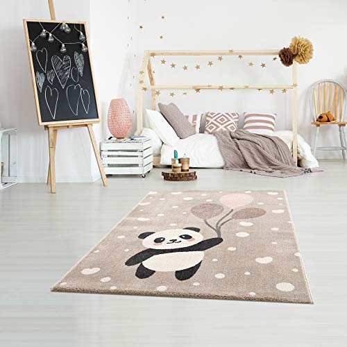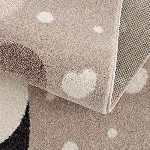 Tappeto per la cameretta dei bambini con fantasie come orsi, panda, pois, cuori e palloncini - colore: crema e beige - 160 x 230 cm