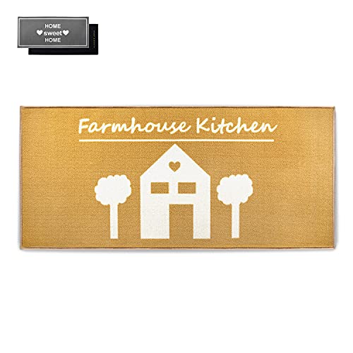Tappeto da cucina antiscivolo lavabile in lavatrice | Tappeto da cucina | Tappeto da cucina | Tappeto beige sabbia adatto al riscaldamento a pavimento | Farmhouse Kitchen, 67 x 150 cm