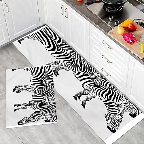 Tappeto Cucina Antiscivolo Lavabile, Tappeti Cucina,Safari, Zebre Animali africani Stampa pelle con strisce Jungle Wildlif,Tappetino Cucina per Sala da Pranzo, Cucina, Corridoio (2PCS 45x70+45x120 cm)