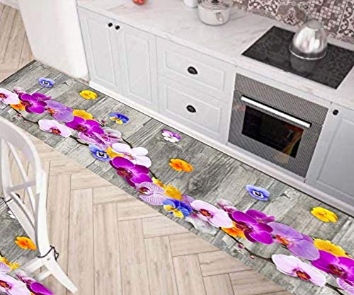 ANTISCIVOLO - Tappeto Passatoia Da Cucina Disegno Floreale Onda Orchidea Misura 52 x 200 cm Con Sottofondo Antiscivolo In PVC 600 gr/mq. Il Tappeto Cucina Aderisce Perfettamente Alla Superficie Evitando Scivolamenti