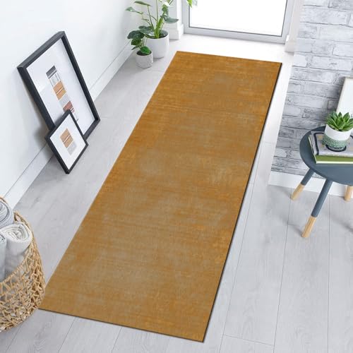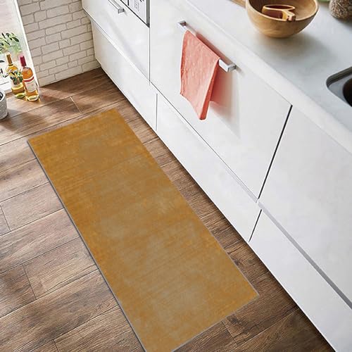 Tappeto da Cucina ocra/marrone 3.4 Metri Moderno Passatoia Cucina Antiscivolo Lavabile,Tappeto Cucina Antiscivolo Tinta Unita Tappeto Corridoio Per Cucina,Camera Da Letto,Soggiorno,Marrone,50x340cm