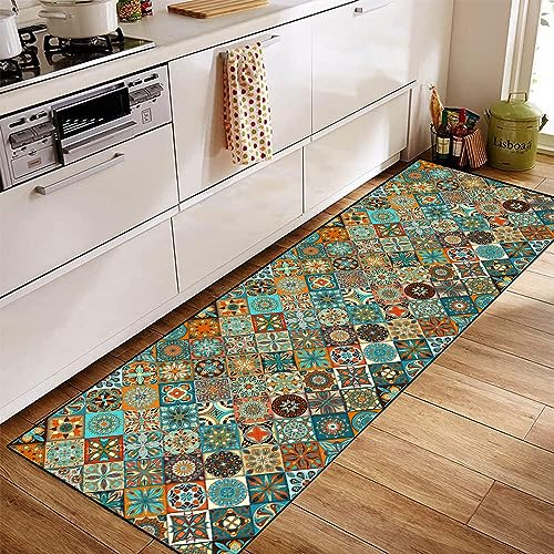 Tappeto da Cucina,Tappeti Cucina Marocchino Tappeto Cucina Piastrelle 4 metri Tappeto Passatoia Cucina Antiscivolo Lavabile Tappeto Corridoio lungo per Cucina Soggiorno,Multi colored c,80x400cm