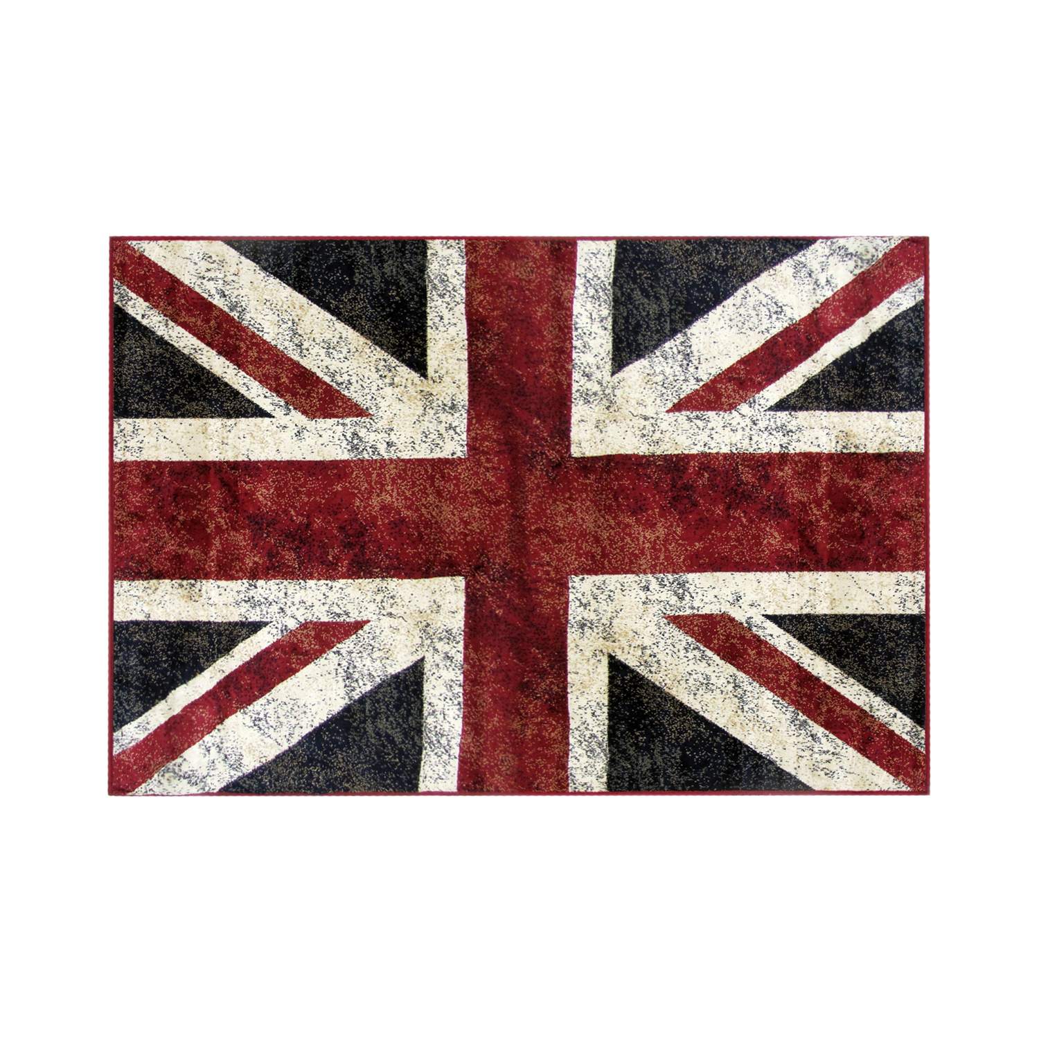 Tappeto con decoro a tema Union Jack, un modo allegro e originale di donare un tocco di colore ad ambienti come camera e sala. La superficie morbida offrirà comfort a ogni vostro passo.