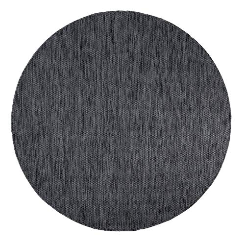 Tappeto Esterni Rotondo Resistente alle Intemperie Balcone Terrazza Cucina Motivo Monocolore, Dimensione:Ø 120 cm Tondo, Colore:Antracite