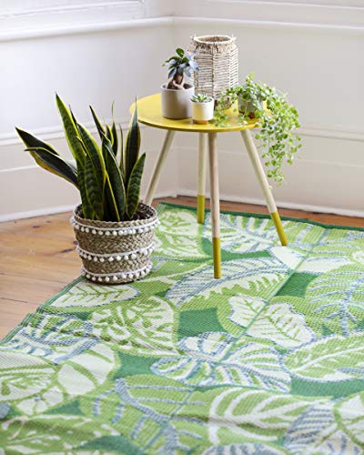 Tappeto da Esterno Impermeabile Verde Foglia di Palma Tropicale | Tappetino in plastica Leggero e Antiscivolo con Motivo a Foglie Giungla | per Giardino, Patio, Piano di calpestio, Bagno, utilità