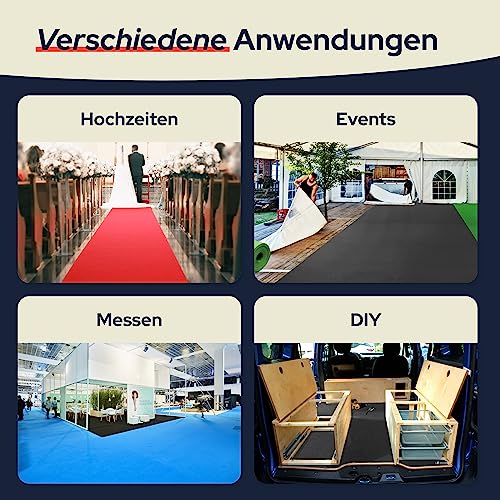 Versatile: il rivestimento per pavimenti in tessuto non tessuto agugliato è un tuttofare e trova diversi usi, il tappeto a coste è ideale per spazi poco frequentati come soffitte, ripostigli, cantine, officine o cabine armadio. Inoltre, il tappeto a costine modello Rips Malta è ideale per le applicazioni temporanee in fiere, mostre, matrimoni, feste aziendali, feste di gala e altri eventi.
