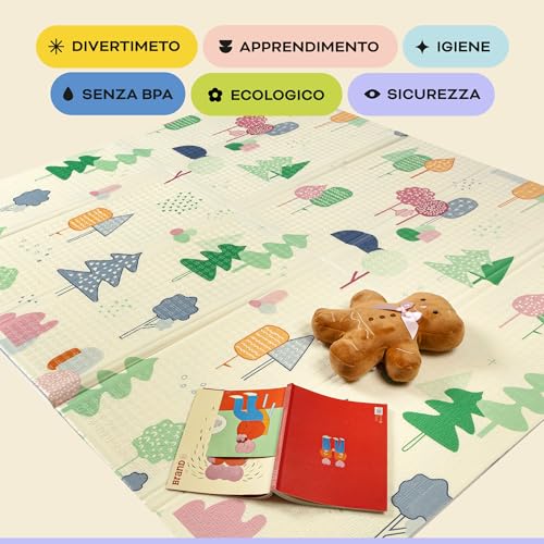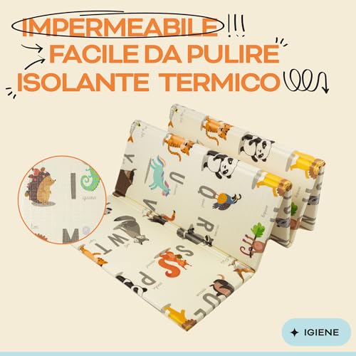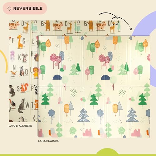 Tappeto giochi bebe imbottito, pieghevole, spessore 1,5cm, 200x180cm, sensoriale, impermeabile, non tossico, tappeto reversibile. Tappetino versatile per bambini, perfetto per gattonare in sicurezza