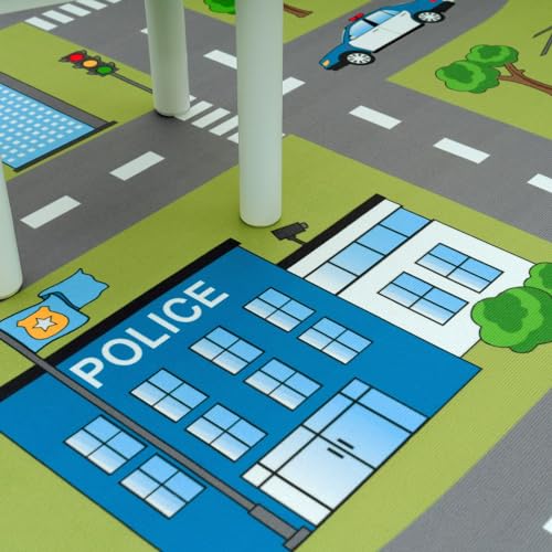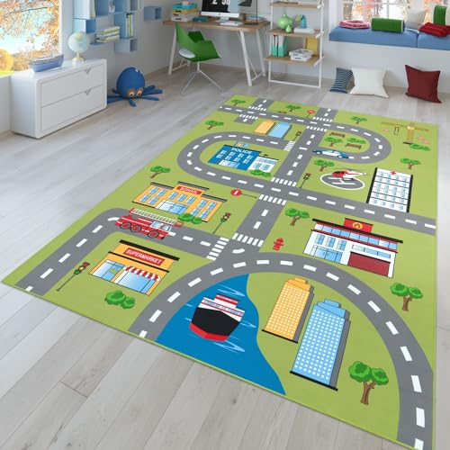 Tappeto da Gioco a Pelo Corto per la Camera dei Bambini con Motivo di Strade e Auto, in Verde, Dimensione:Ø 200 cm Tondo