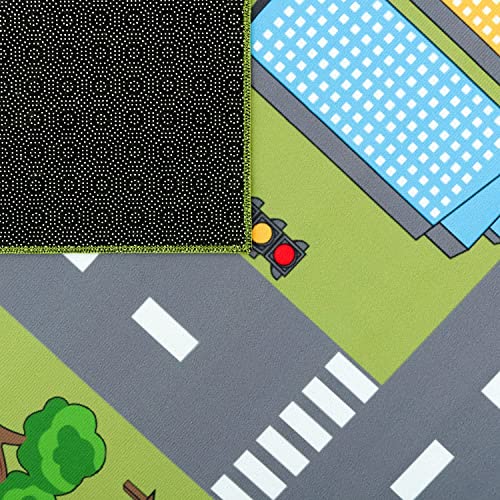 Tappeto da Gioco a Pelo Corto per la Camera dei Bambini con Motivo di Strade e Auto, in Verde, Dimensione:Ø 160 cm Tondo