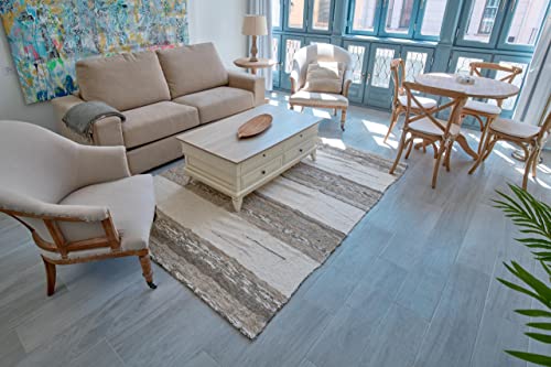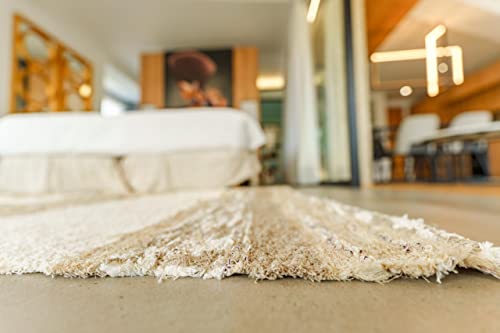 Tappeto, grande decorazione per soggiorno, cucina, camera da letto e corridoio: Realizzato a mano con cotone naturale, a pelo corto, morbido e lavabile en lavatrice (200 x 140 cm, Ecru-Marrone Chiaro)