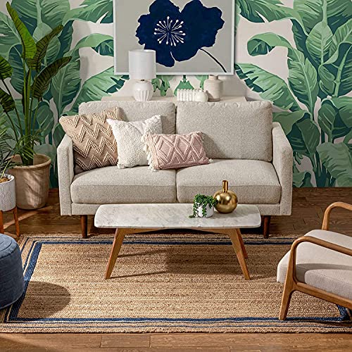 Tappeto in iuta naturale con linea blu rettangolare intrecciato a mano reversibile (60 x 360 cm)