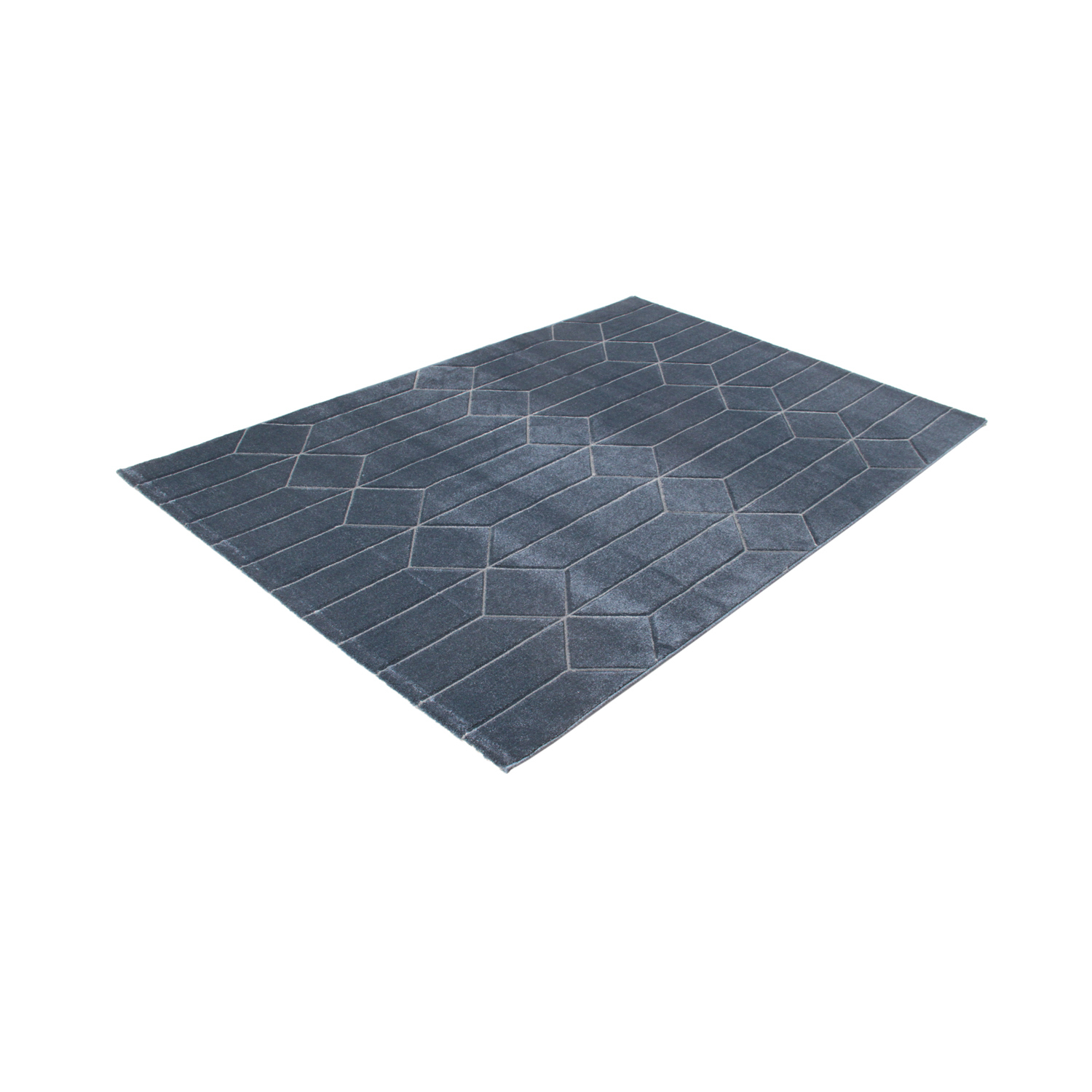 Questo elegante tappeto non è solo moderno e bellissimo, è anche prodotto con materiali resistenti e rifinito a mano su telaio meccanico! Le linee del disegno su fondo blu creano un effetto 3D con fantastico impatto visivo. Il polipropilene del filato è garanzia di resistenza e morbidezza che, unito all'utilizzo della juta, rende il prodotto duraturo nel tempo e refrattario all'umidità e agli sbalzi di temperatura. Dimensioni: 150x80 cm.