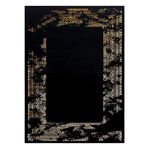 Tappeto moderno GLOSS per soggiorno, camera da letto, studio, elegante, glamour, Art Deco, Telaio nero / oro 80x150 cm