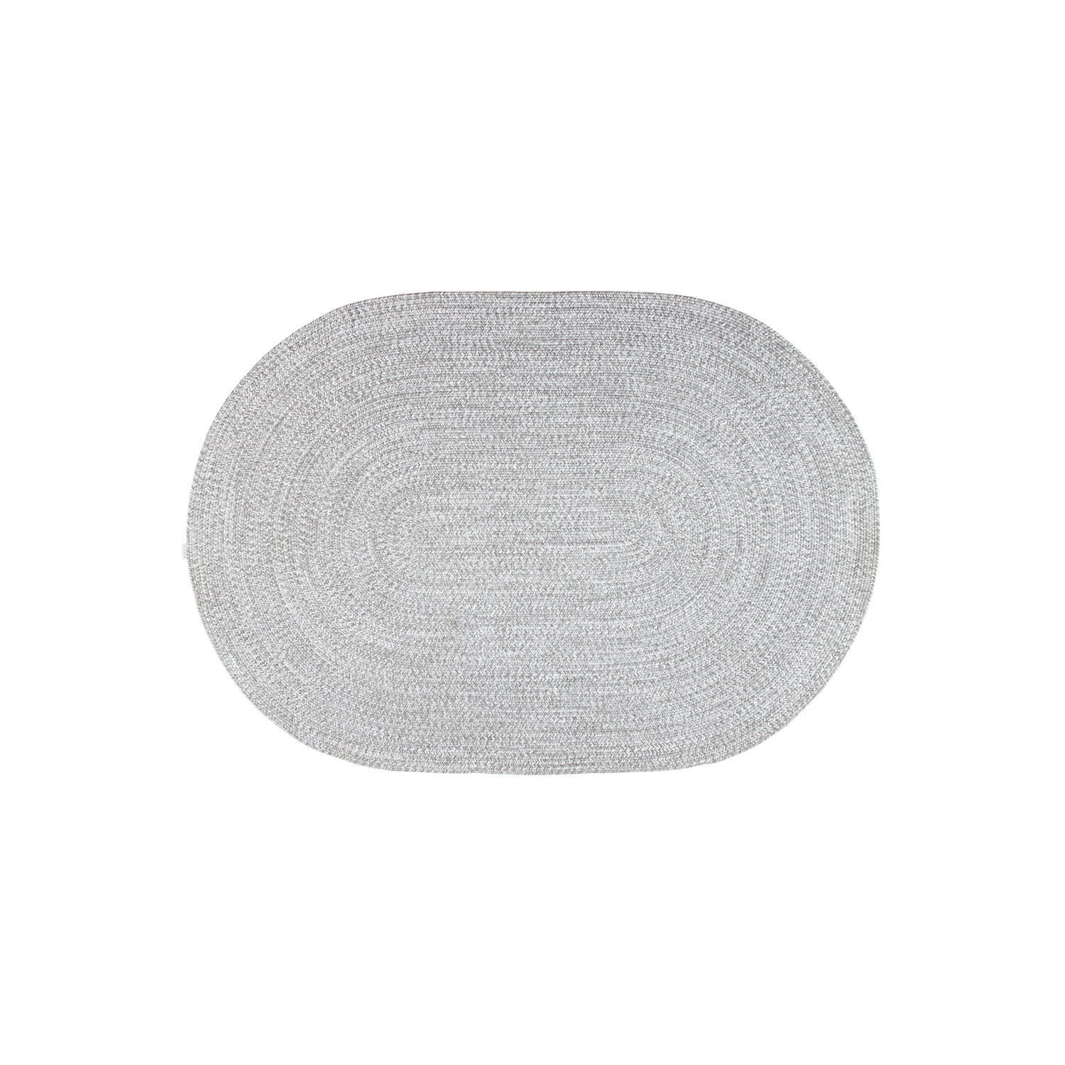 Questo bellissimo tappeto ovale è adatto sia a contesti d'arredo interno che esterno grazie alla tessitura piatta intrecciata in una particolare lavorazione che ne incrementa la robustezza. E poi è tessuto a mano! Il mix di filati bianco, avorio e grigio chiaro crea un fantastico effetto cangiante. Dimensioni: 230x160 cm.