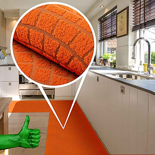Tappeto a passatoia da cucina lavabile, ritagliabile, antiscivolo, in velour, 67 x 200 cm, motivo: Davis, colore: arancione