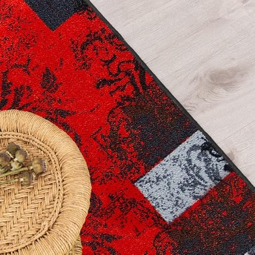 Tappeto a passatoia dal design moderno e colori brillanti | rimagliato | a pelo corto | tappeto da cucina, corridoio, Poliammide, nero/rosso, Läufer 80x500cm