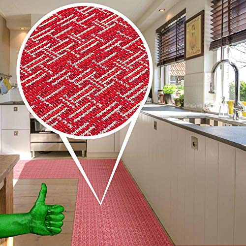 Tappeto passatoia Itaca, per cucina e corridoio, antiscivolo, lavabile, fino a 5 m di lunghezza, 260 x 67 cm, colore: rosso