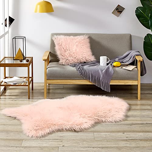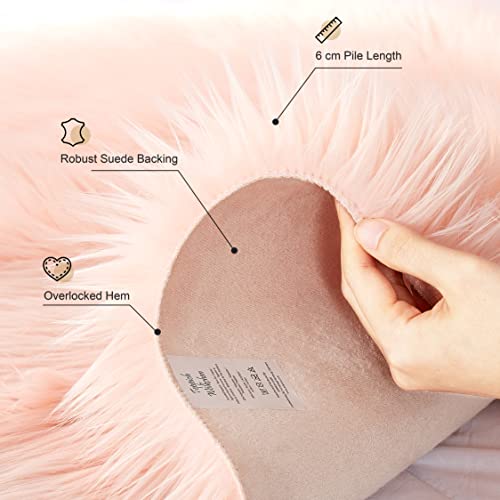 Tappeto in pelle d'agnello, imitazione della pelliccia | Soggiorno Camera da letto | Tappeto da letto lavabile, cuscino di seduta, pelliccia per sedia, divano (Rosa - 80x120 cm)