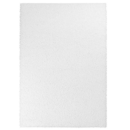 Tappeto a pelo lungo in tinta unita, di forma rettangolare, certificato Oeko-Tex, colore: bianco, Polipropilene, White, 80 cm_x_300 cm