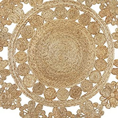 DNR Tappeto rotondo indiano in fibra naturale multi fiore marrone iuta 30 x 25 cm (100 x 100 cm)