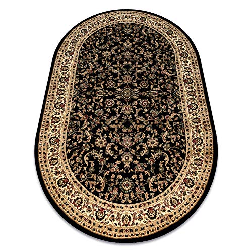 Tappeto ROYAL classico, tradizionale, orientale, per la camera, soggiorno, camera da letto, di alta qualità, ADR 1745 nero, ovale 200x290 cm