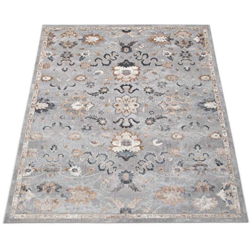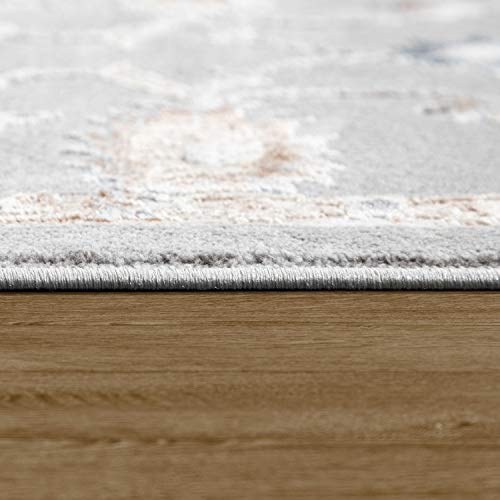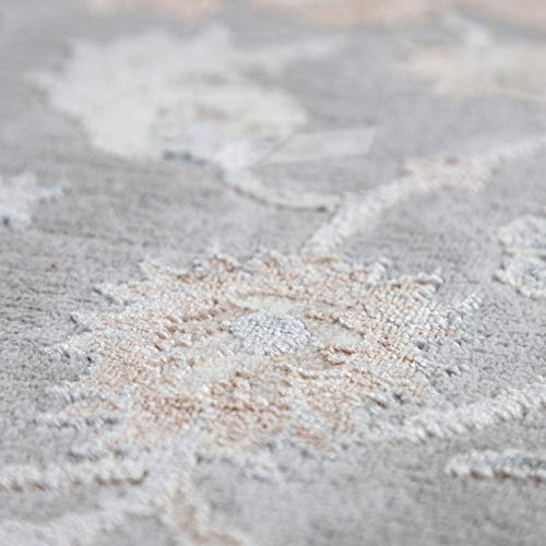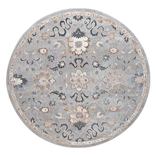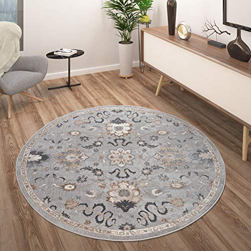 Tappeto Salotto Pelo Corto Motivo Orientale Ornamenti, Effetto 3D Grigio Beige, Dimensione:Ø 200 cm Tondo