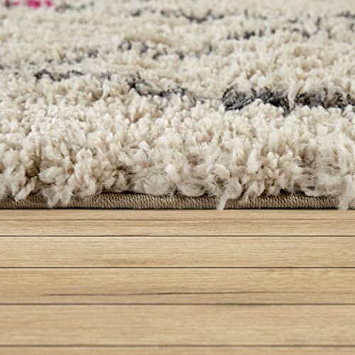Tappeto Shaggy a Pelo Lungo Stile Etnico Variopinto Motivo Geometrico a Punti in Crema, Dimensione:80x150 cm