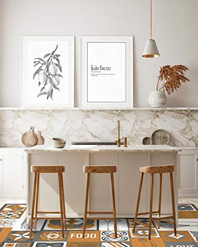 Tappeto Vinile Cucina Collage Piastrelle Arancione 140x200 cm - Tappeto da Cucina Piastrelle Antiscivolo - Tappeto Moderno Salotto - Tappeto Lavabile Ignifugo - Tappeto Grande - Tappeto PVC