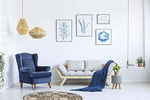Tappeto Vinile Rotondo Idraulico Arancione 3 190x190 cm - Tappeto da Cucina Piastrelle Antiscivolo - Tappeto Moderno Salotto - Tappeto Lavabile Ignifugo - Tappeto Grande - Tappeto PVC