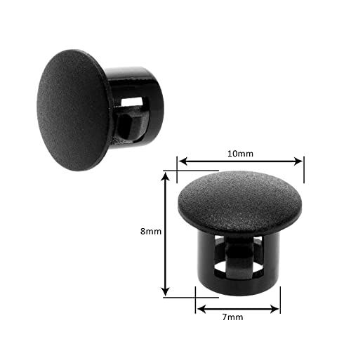 100 tappi per fori in plastica nera da 7 mm, con foro di bloccaggio, 7 mm, in acciaio per mobili, recinzioni, tubi, tappi per armadi, armadietti, funiture