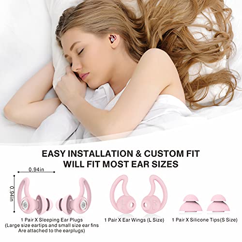 Tappi per le orecchie per dormire, tappi per le orecchie con riduzione del rumore Hearprotek 30dB con isolamento acustico con auricolari in silicone, tappi per le orecchie morbidi per dormire(Rosa)