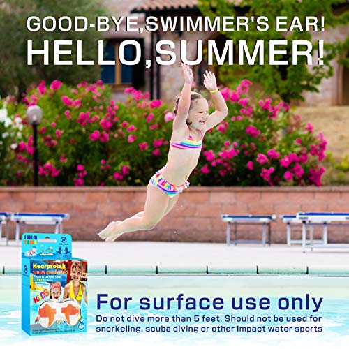 Tappi per le orecchie da nuoto per bambini, Hearprotek 2 paia di tappi auricolari in silicone riutilizzabili per nuotatori, bagno, doccia e altri sport acquatici