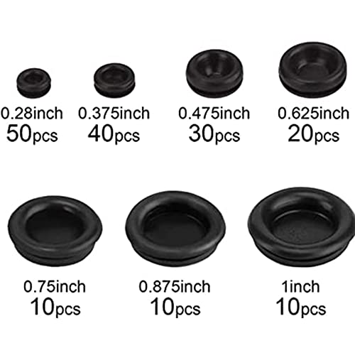 Tappi Passacavi Gomma in 7 Misure, 170 pz Guarnizione di Gomma Firewall Hole Spina elettrica Filo Guarnizione Anello di Tenuta in Gomma per Auto valvola