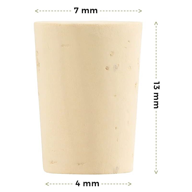 100 tappi a punta con un diametro compreso tra 4 e 7 mm e una lunghezza di 13 mm. I tappi sono realizzati in puro sughero naturale senza additivi o adesivi, punzonati dalla corteccia della quercia da sughero. I tappi a punta in sughero sono adatti per la chiusura di vasi con un diametro di apertura di 3-6 mm. Ideale come tappo per medicinali o per uso in laboratorio. I tappi conici in sintesi: Diametro 4 - 7 mm. Lunghezza: 13 mm. In puro sughero naturale proveniente dal Portogallo. Senza additivi o adesivi.