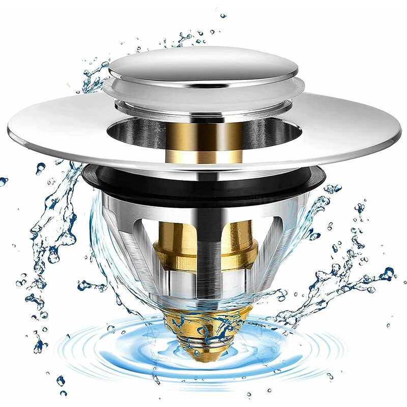 Nuovo design - Lo scarico è ottimizzato e migliorato sulla base degli scarichi ordinari. È adatto per fori di scarico con diametro interno di 32-38 mm per evitare problemi comuni come dimensioni incoerenti e insufficienti. È adatto per la maggior parte delle case. Installazione rapida: basta rimuovere manualmente il tappo di scarico originale, inserire il nostro tappo del lavandino e premere l'interruttore a molla per chiudere facilmente il tappo e il filtro. Senza attrezzi, l'installazione e lo smontaggio possono essere completati in 3 secondi, rendendo la vita più facile e conveniente. Valvola di scarico a scomparsa: il lavello può impedire al tubo di attaccare lo smaltimento delle acque reflue ed evitare la comparsa di un odore particolare. Non si ribalta quando si preme il pulsante, quindi non devi preoccuparti di chiuderlo e svuotarlo. Due guarnizioni in silicone nero possono mantenere la stabilità per migliorare la resistenza alle perdite. 【Filtro integrato】 A differenza degli