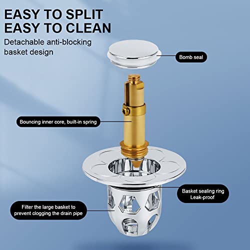 【Facile da usare】Il design pop-up ribalta il tradizionale e scomodo tappo del lavandino: basta premere il tappo superiore per passare a piacimento da una modalità all'altra,tappo (per trattenere l'acqua) e filtro (per drenare l'acqua).