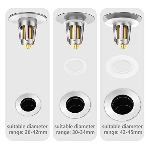 WD&CD Tappo Lavandino Bagno, Universale Lavello Per Lavabo Pop-up con 3 Guarnizioni per Lavabo di Scarico, Tappo Lavabo a Scomparsa per Valvola Lavandino Bagno/Piletta Lavabo/Bidet Vasca (28-45mm)