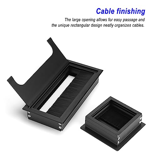 Tappo Scrivania Passacavo Nero, PARFCO 2 Pezzi Passacavi Scrivania Alluminio, Pennello per la Polvere, Passacavi Scrivania per Ufficio, Studio, Camera da Letto 80x80 mm 160x80 mm
