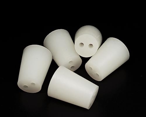 Tappo in Silicone con Foro (Confezione da 5) - Tappo da Laboratorio | Tappi di Silicone Affusolati (24/18mm - h:30mm + 2 fori Ø 4mm)