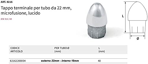 TAPPO TERMINALE INOX AISI 316 LUCIDO PER PULPITO IMBARCAZIONE CORRIMANO DI SICUREZZA - MICROFUSO PER TUBO Ø 22 MM