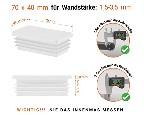 Tappo per tubo rettangolare fino a 70x40 mm 5 pezzi colore Bianco tappi a lamelle Tappo rettangolare 7x4 cm EMFA ®
